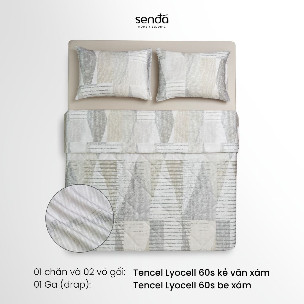 Bộ chăn ga gối 4 món (chăn chần bông) Lụa Tencel 60S họa tiết - Kẻ vân xám
