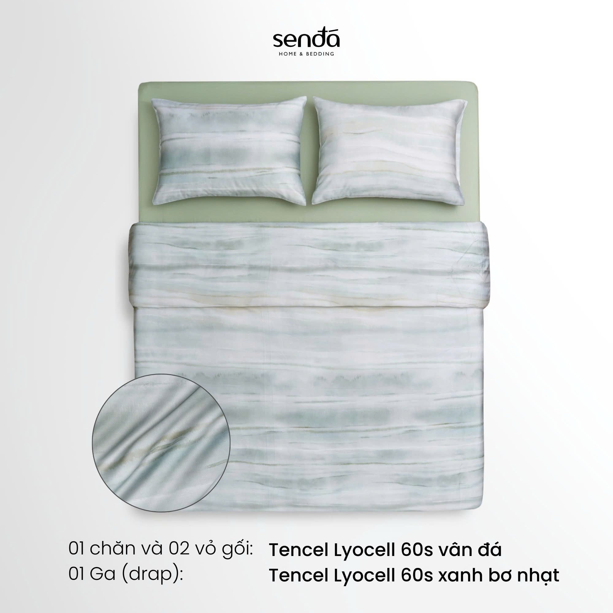 Bộ chăn ga gối 4 món (chăn chần bông) Lụa Tencel 60S họa tiết - Vân đá