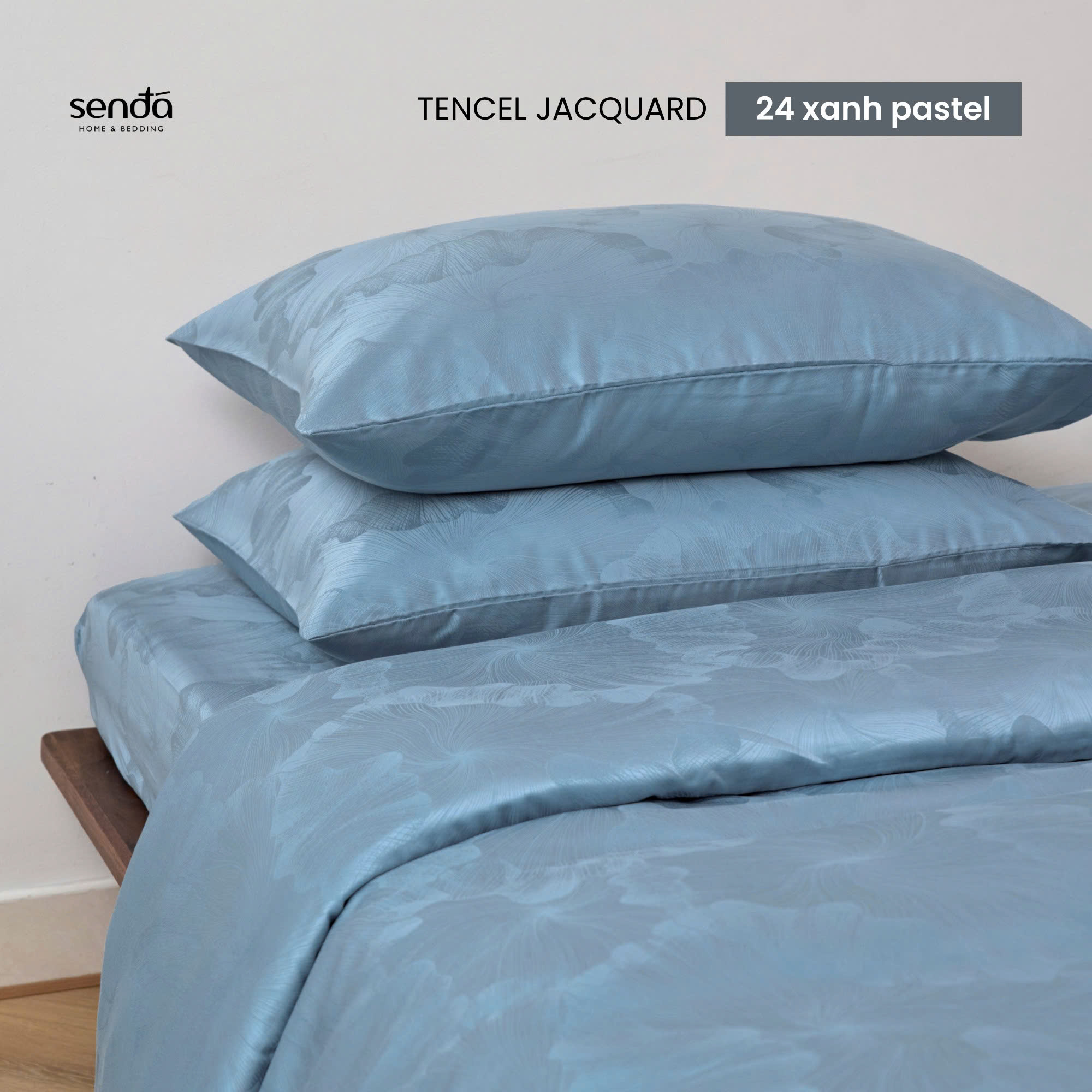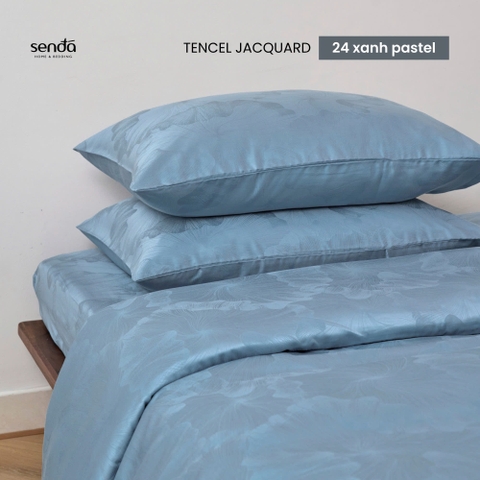 Bộ chăn ga gối 4 món Lụa Tencel Jacquard vân gấm - 24 Xanh pastel
