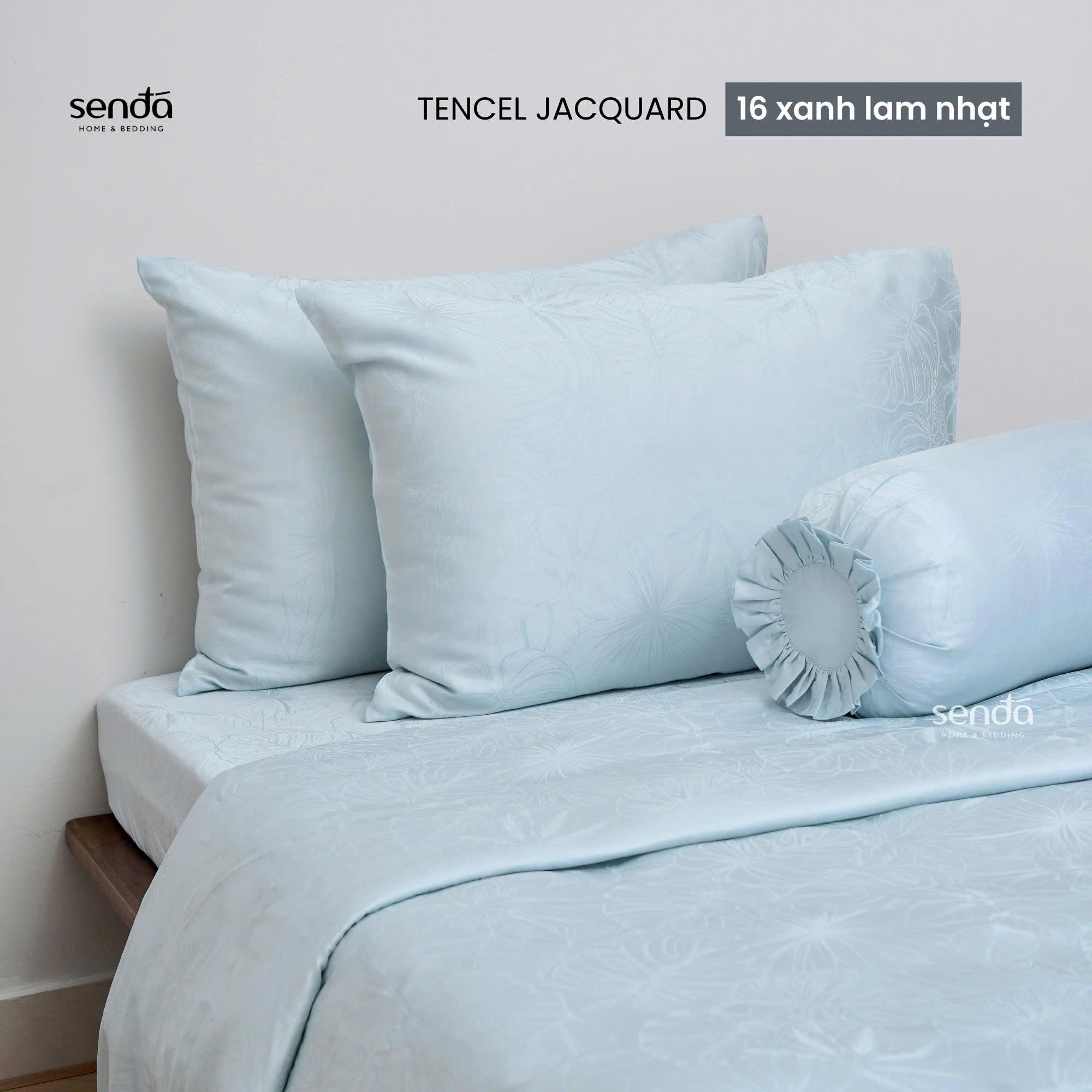 TENCEL Lyocell luôn được xem là chất liệu vải cao cấp trong thị trường chăn ga gối. Mà cao cấp hơn chính là dòng vải Tencel Jacquard với kỹ thuật dệt phức tạp tạo nên những hoa văn độc đáo trên bề mặt mà không qua công nghệ in hoặc thêu như các loại vải có họa tiết khác. Đặc trưng của vải Jacquard là ở mặt phải của tấm vải, họa tiết hoa văn sẽ nổi rõ lên còn mặt trái thì chìm vào trong. Công nghệ dệt jacquard kết hợp với ánh sáng khi chiếu vào bề mặt sợi tạo lên hiệu ứng 3D toát lên vẻ sang trọng và tinh tế. Vải Tencel Jacquard suông phẳng, mang lại cảm giác mềm mại khi chạm vào.