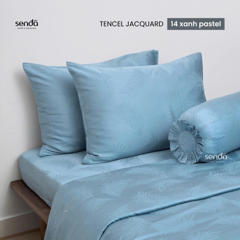 TENCEL Lyocell luôn được xem là chất liệu vải cao cấp trong thị trường chăn ga gối. Mà cao cấp hơn chính là dòng vải Tencel Jacquard với kỹ thuật dệt phức tạp tạo nên những hoa văn độc đáo trên bề mặt mà không qua công nghệ in hoặc thêu như các loại vải có họa tiết khác. Đặc trưng của vải Jacquard là ở mặt phải của tấm vải, họa tiết hoa văn sẽ nổi rõ lên còn mặt trái thì chìm vào trong. Công nghệ dệt jacquard kết hợp với ánh sáng khi chiếu vào bề mặt sợi tạo lên hiệu ứng 3D toát lên vẻ sang trọng và tinh tế. Vải Tencel Jacquard suông phẳng, mang lại cảm giác mềm mại khi chạm vào.