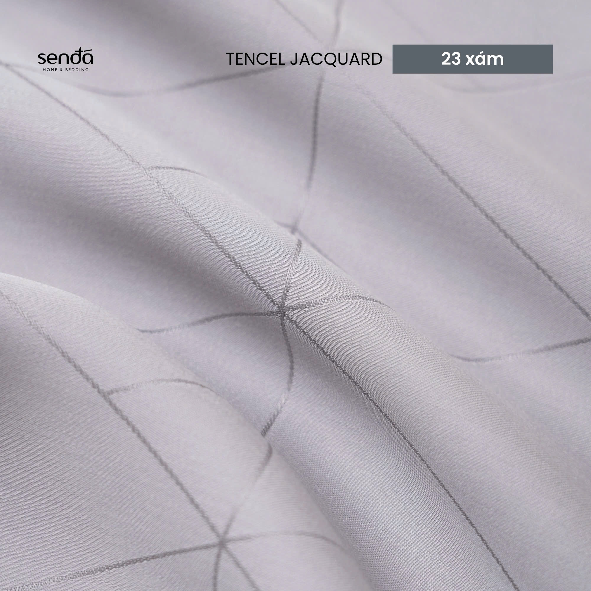 TENCEL Lyocell luôn được xem là chất liệu vải cao cấp trong thị trường chăn ga gối. Mà cao cấp hơn chính là dòng vải Tencel Jacquard với kỹ thuật dệt phức tạp tạo nên những hoa văn độc đáo trên bề mặt mà không qua công nghệ in hoặc thêu như các loại vải có họa tiết khác. Đặc trưng của vải Jacquard là ở mặt phải của tấm vải, họa tiết hoa văn sẽ nổi rõ lên còn mặt trái thì chìm vào trong. Công nghệ dệt jacquard kết hợp với ánh sáng khi chiếu vào bề mặt sợi tạo lên hiệu ứng 3D toát lên vẻ sang trọng và tinh tế. Vải Tencel Jacquard suông phẳng, mang lại cảm giác mềm mại khi chạm vào.