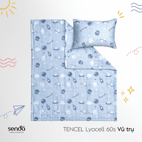 Bộ chăn gối cho bé đi học Lụa Tencel họa tiết - Vũ trụ