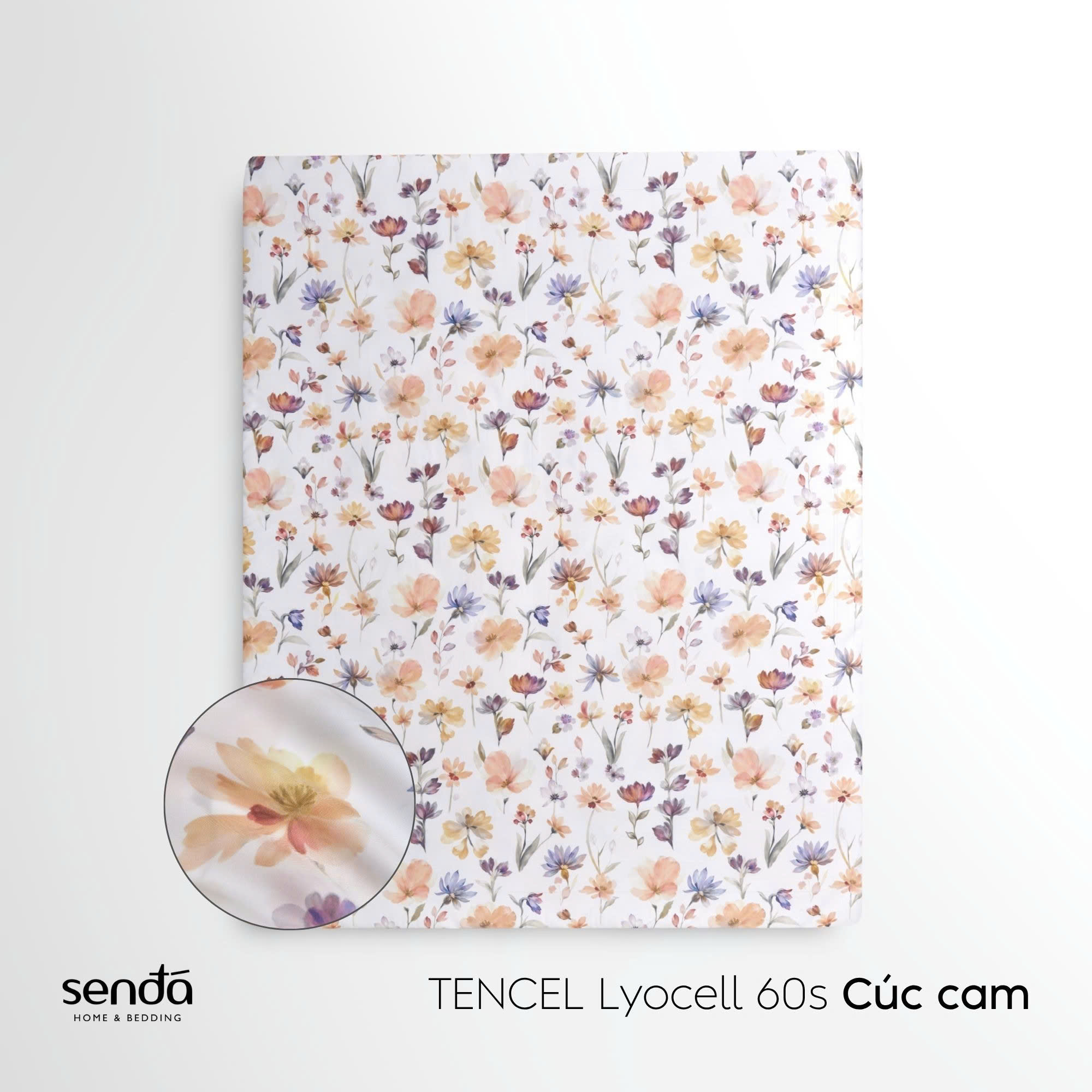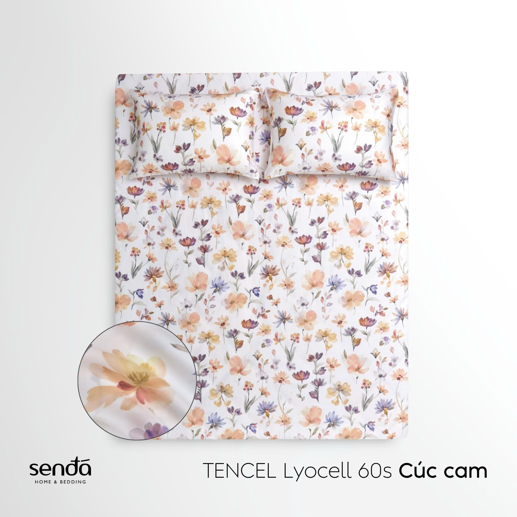 Bộ ga gối 3 món Lụa Tencel 60S họa tiết - Cúc cam
