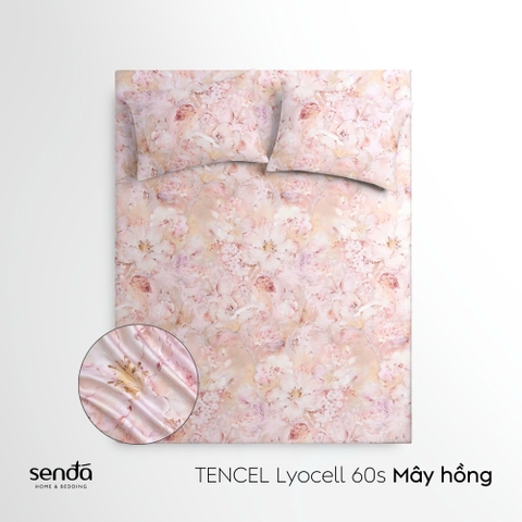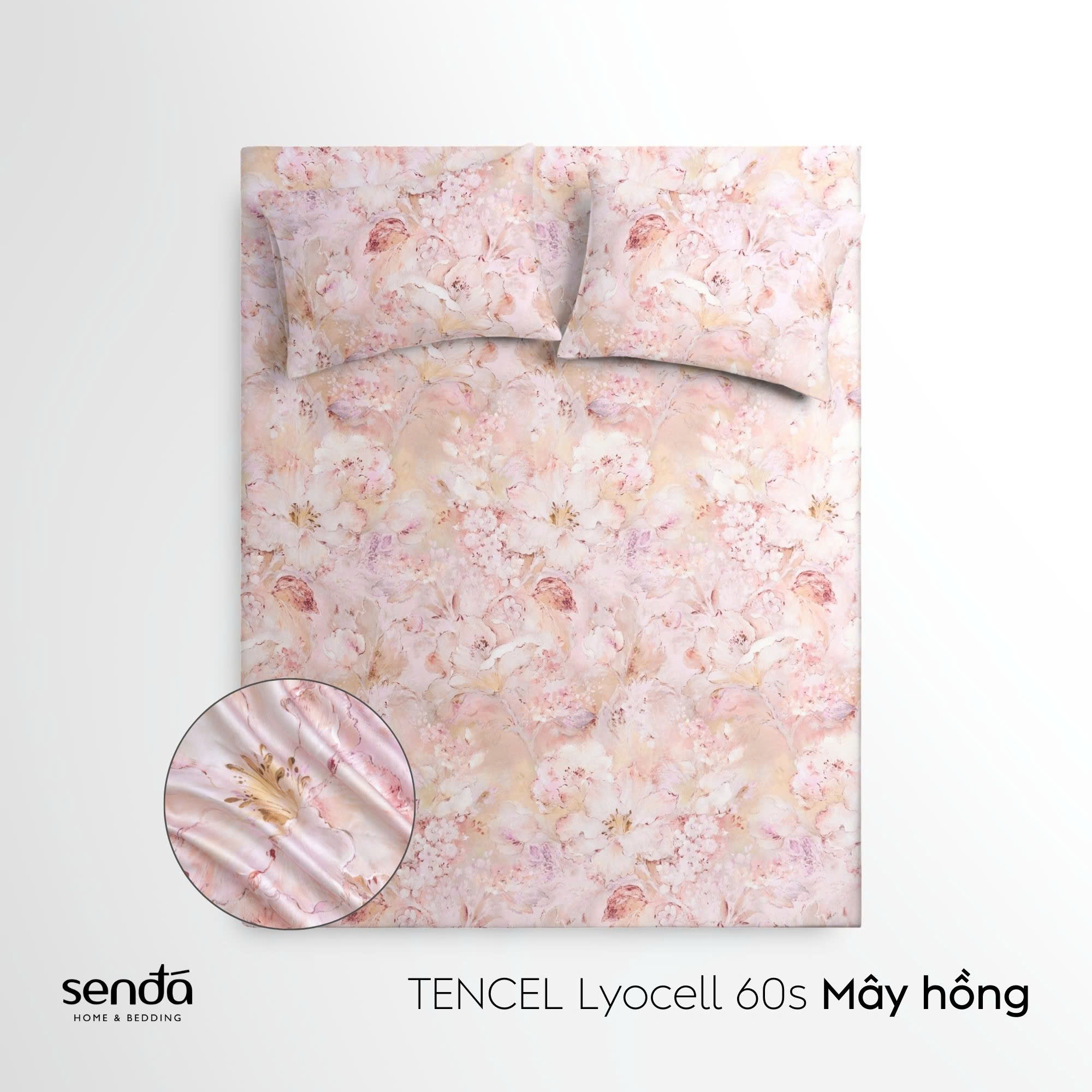 Bộ ga gối 3 món Lụa Tencel 60S họa tiết - Mây hồng