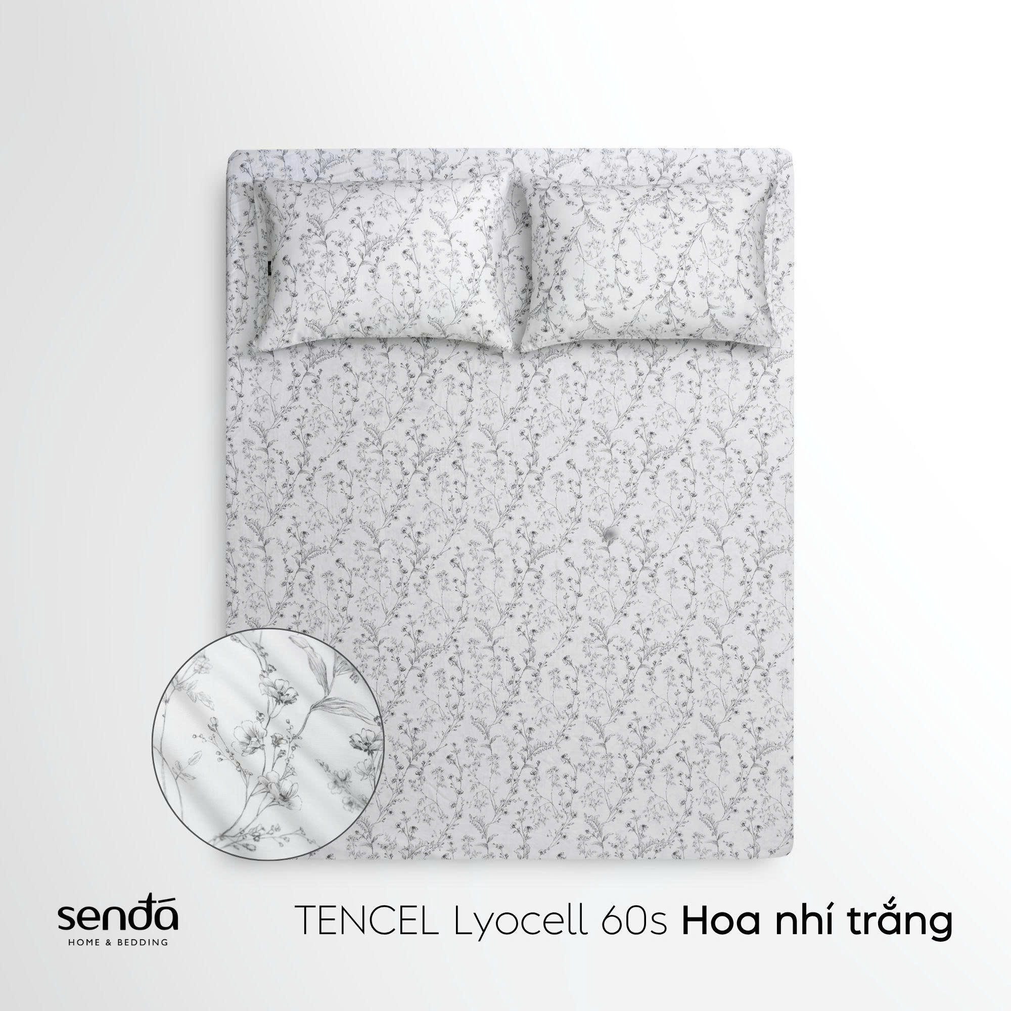 Bộ ga gối 3 món Lụa Tencel 60S họa tiết - Hoa nhí trắng