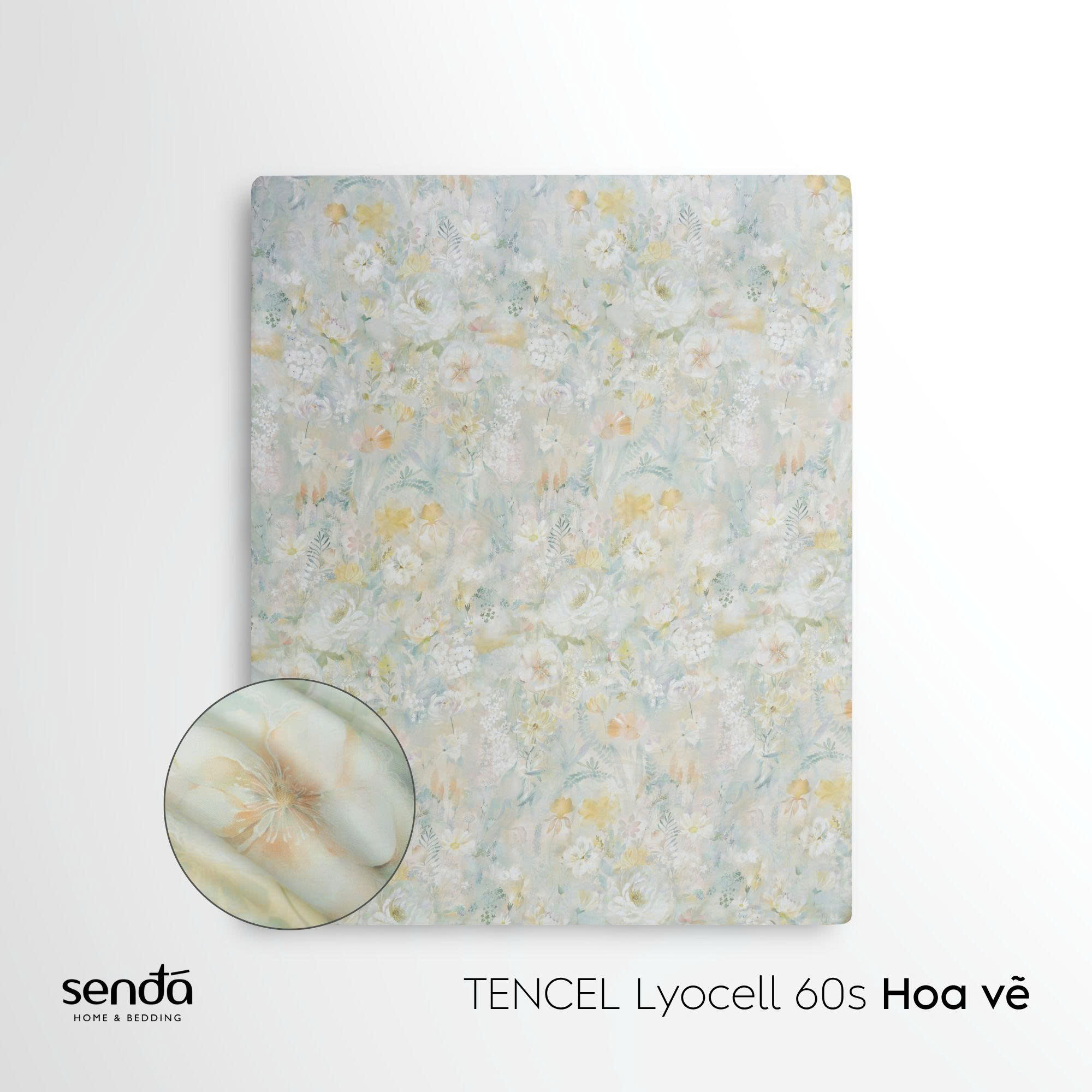 Bộ ga gối 3 món Lụa Tencel 60S họa tiết - Hoa vẽ
