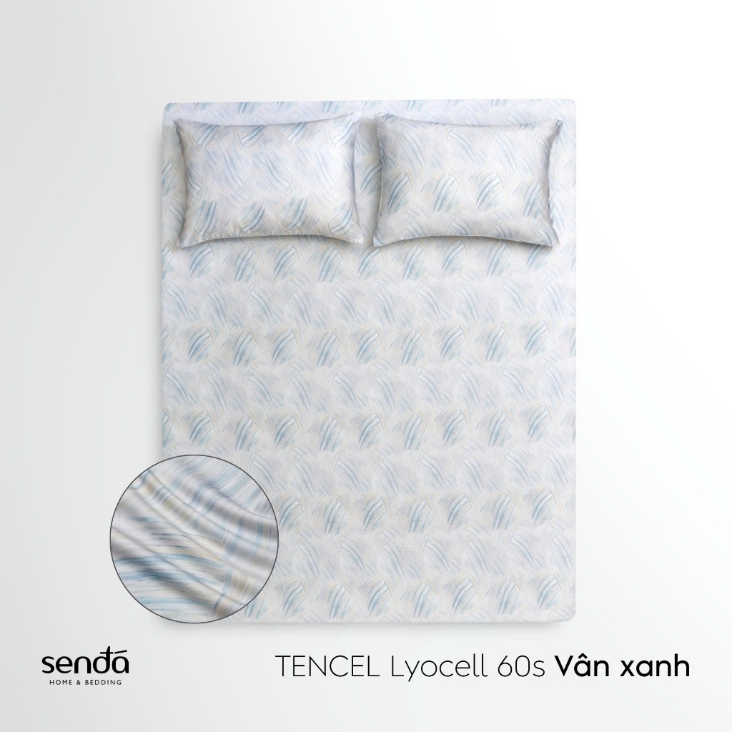 Bộ ga gối 3 món Lụa Tencel 60S họa tiết - Vân xanh