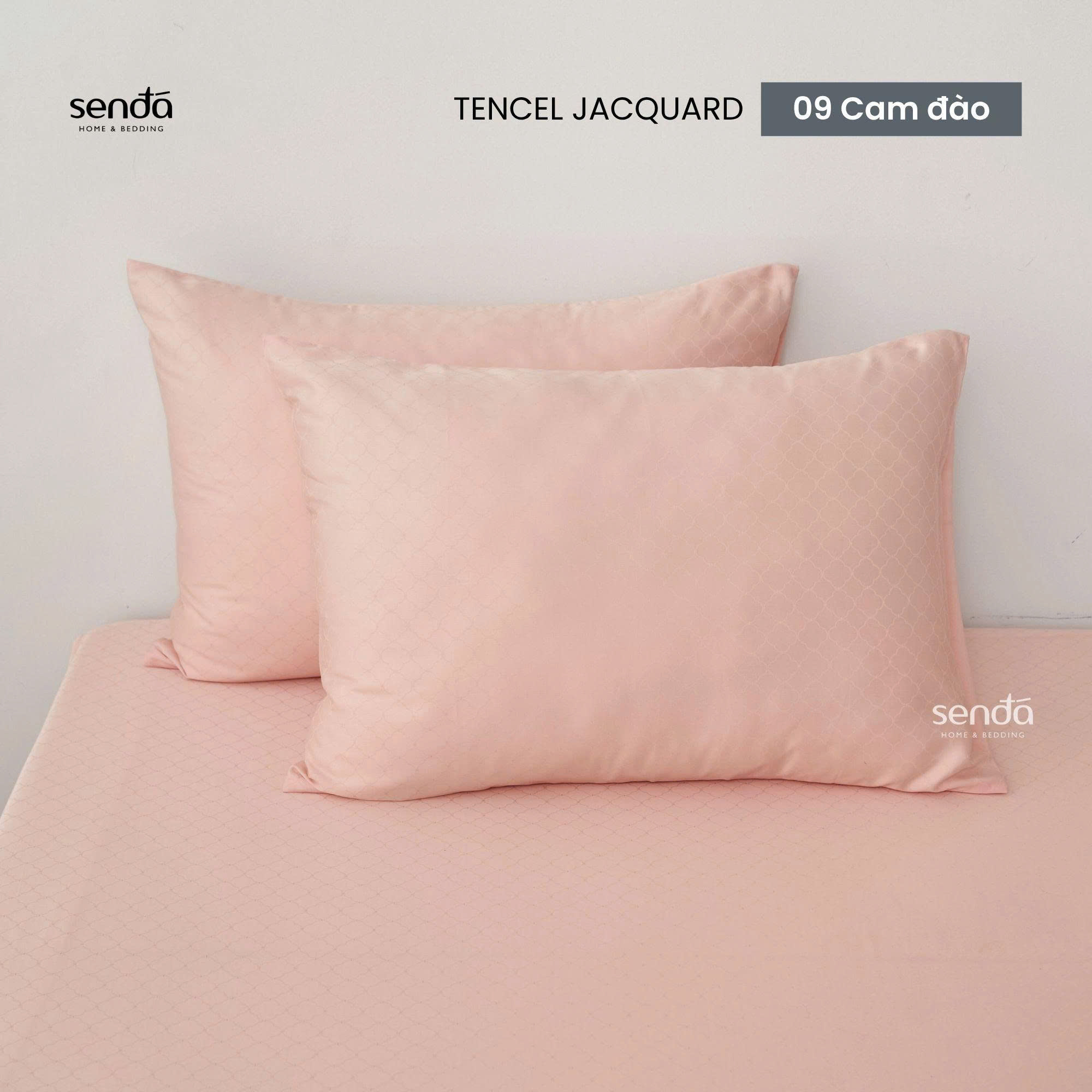 Bộ ga gối 3 món Lụa Tencel Jacquard vân gấm - 09 Cam đào