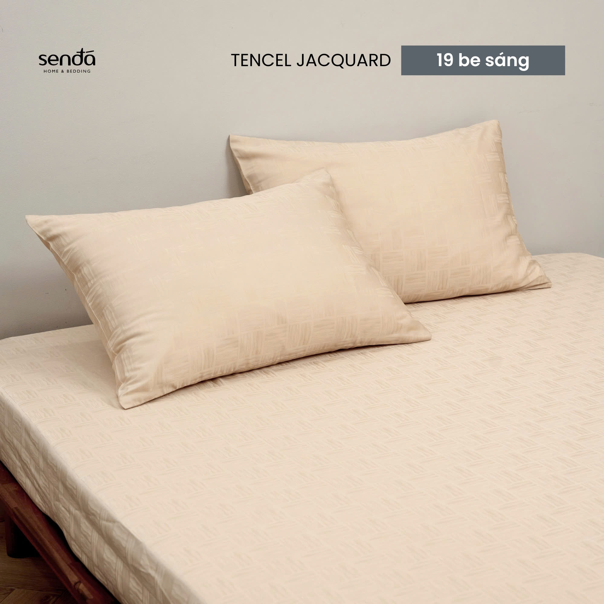 Bộ ga gối 3 món Lụa Tencel Jacquard vân gấm - 19 be sáng