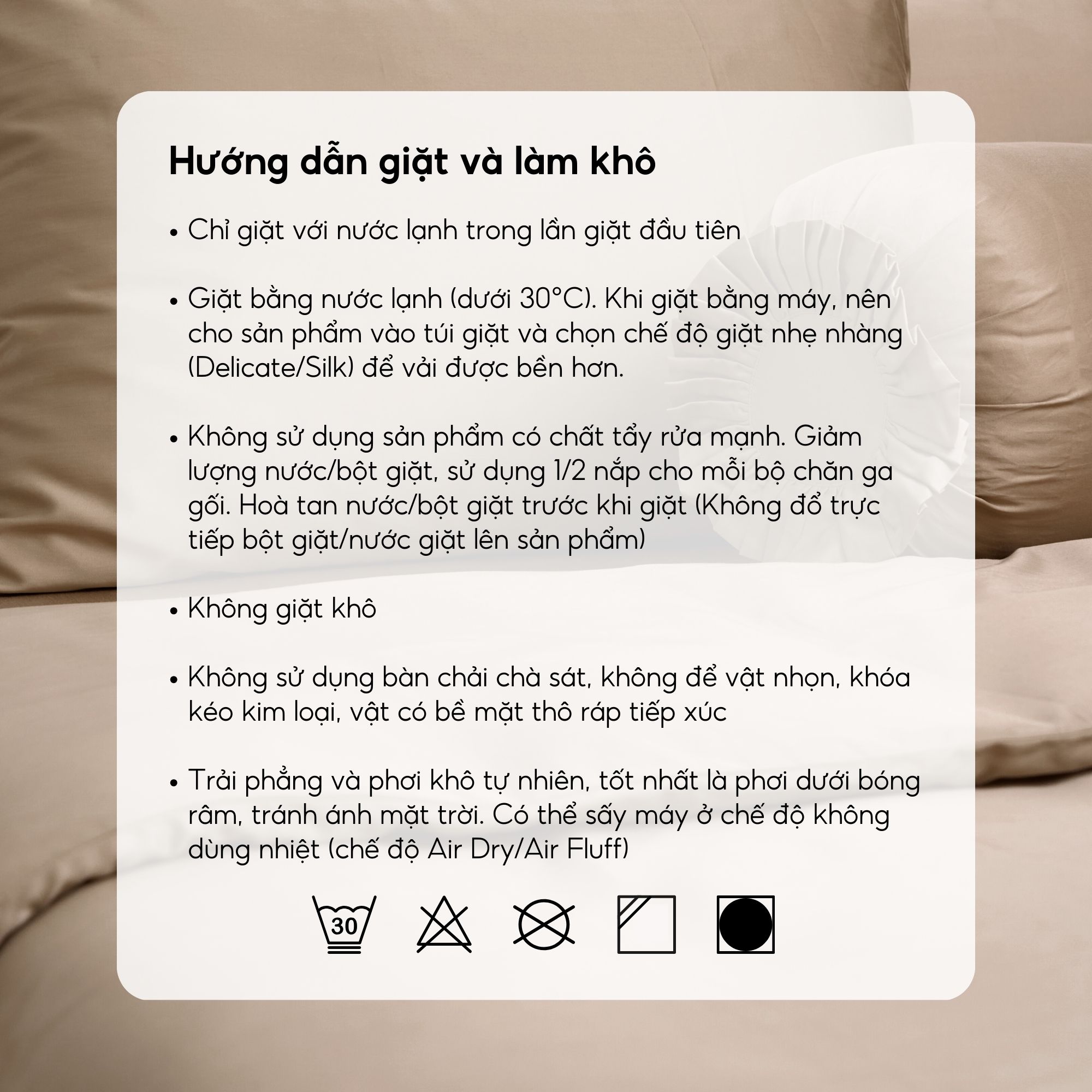 - Sự kết hợp giữa Tencel (từ gỗ tự nhiên) và Cotton giúp bề mặt vải mềm mại, nhẹ nhàng với làn da, đặc biệt phù hợp cho da nhạy cảm.