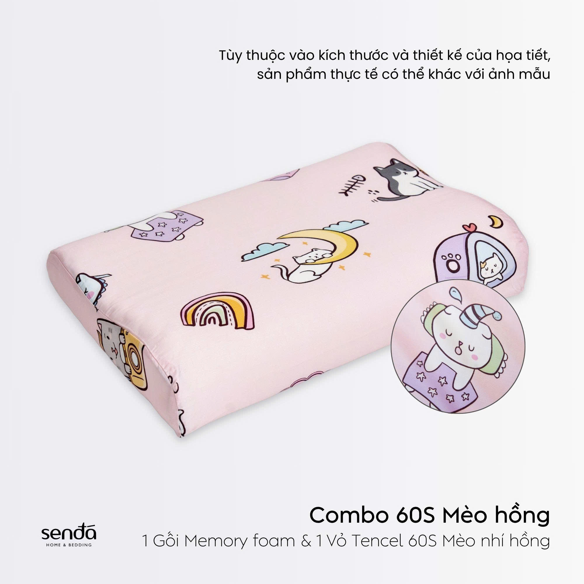 - Vỏ gối có thể giặt bằng máy với nước lạnh <40 độ C