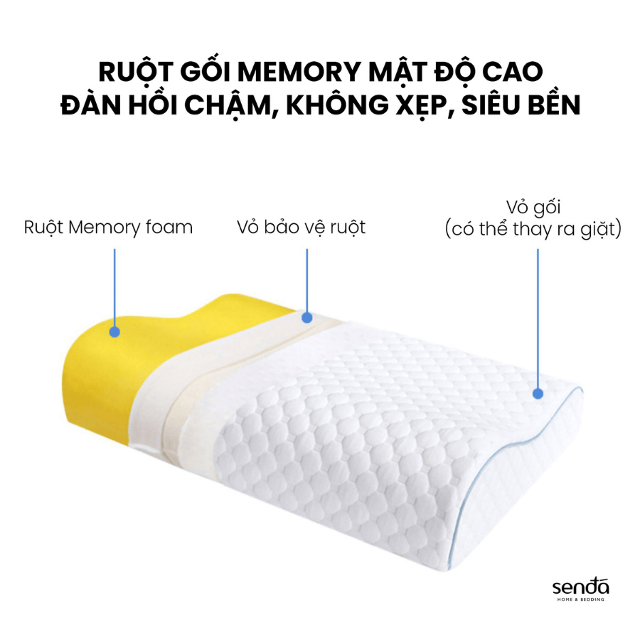 Đặc biệt, bên trong ruột gối còn có thêm lớp vỏ bảo vệ giúp ngăn bụi bẩn và mồ hôi thấm trực tiếp vào lõi mút, giữ cho gối luôn sạch sẽ và bền bỉ theo thời gian