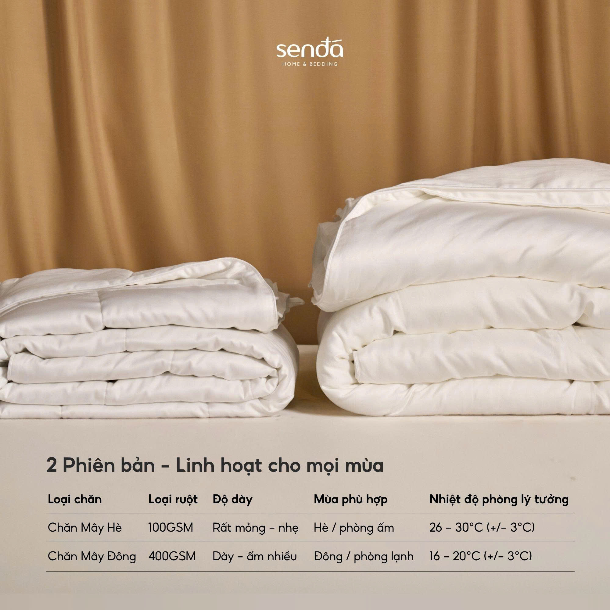 - Như tên gọi của mình, Ruột Chăn Mây mang đến trải nghiệm giấc ngủ nhẹ nhàng, êm ái như đang được bao bọc trong tầng mây mềm mại. Với chất liệu cao cấp và thiết kế theo tiêu chuẩn khách sạn 5 sao, sản phẩm là lựa chọn lý tưởng dành cho những ai yêu sự êm ái, thoáng nhẹ và muốn nâng niu trọn vẹn từng giấc ngủ.