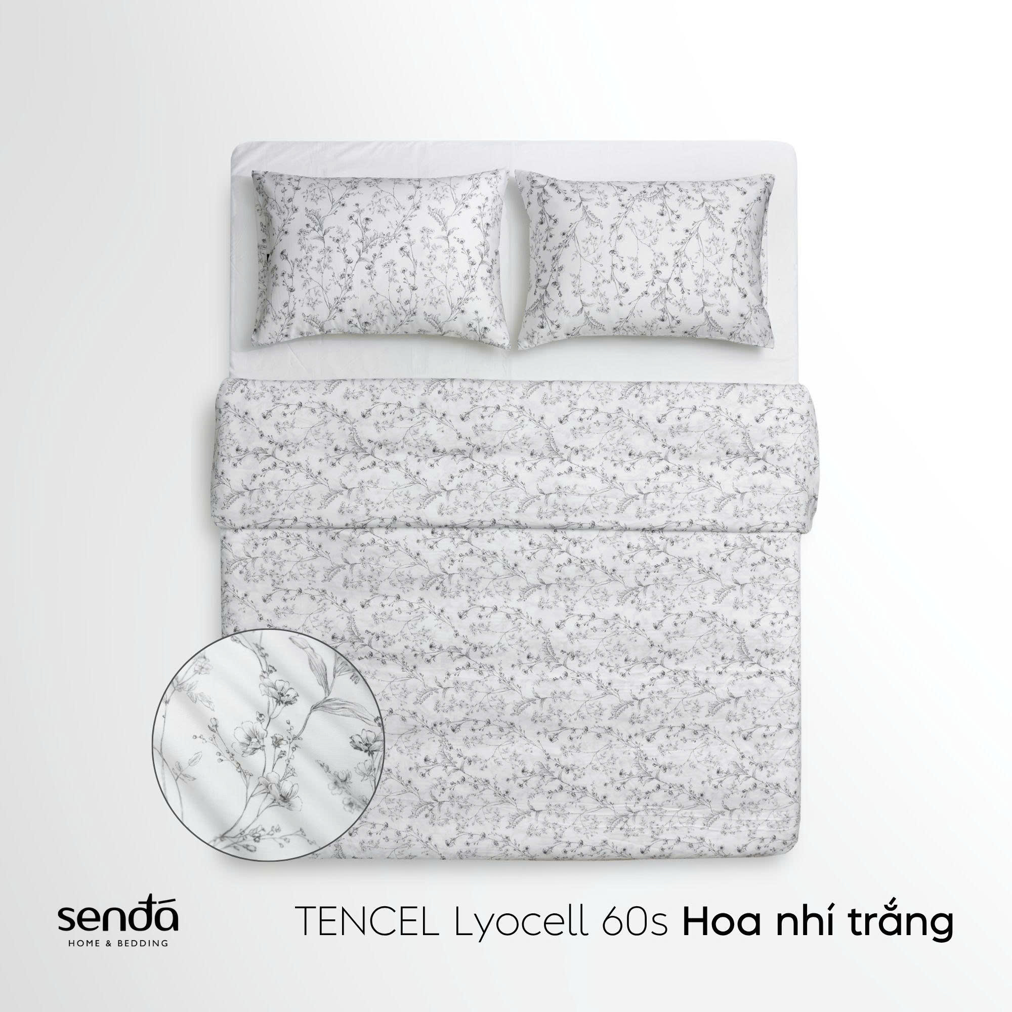 Vỏ chăn chần bông Lụa Tencel 60S họa tiết - Hoa nhí trắng