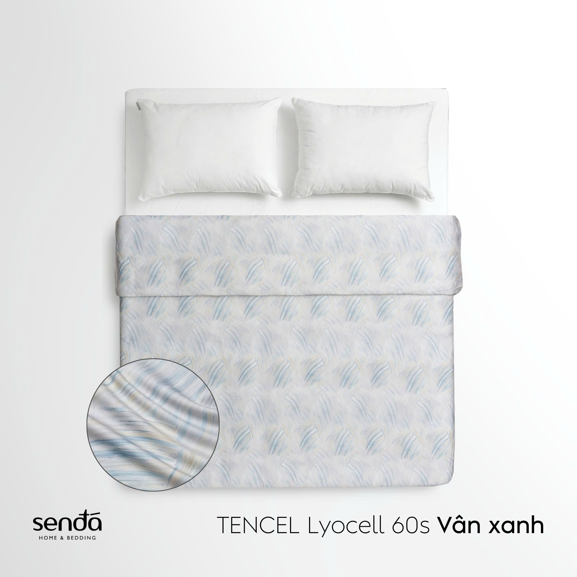 Vỏ chăn mỏng Lụa Tencel 60S họa tiết - Vân xanh