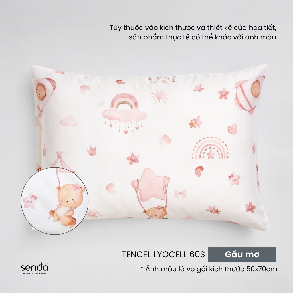 Vỏ gối nằm cho bé đi học Lụa Tencel họa tiết - Gấu mơ