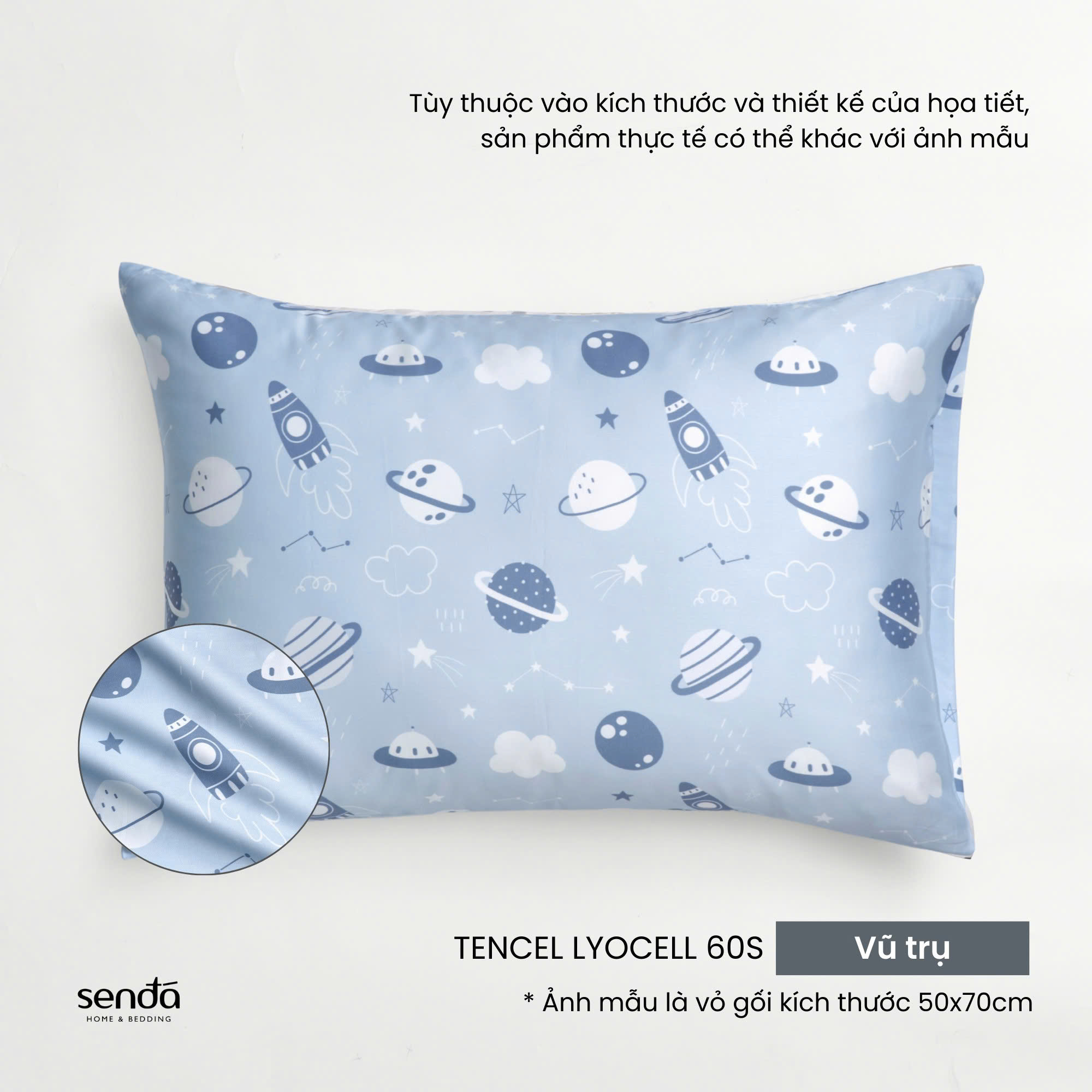 Vỏ gối nằm cho bé đi học Lụa Tencel họa tiết - Vũ trụ