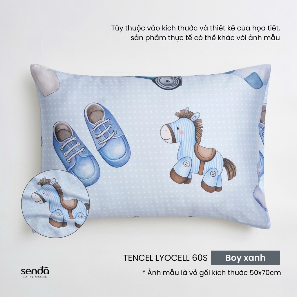 Vỏ gối nằm cho bé đi học Lụa Tencel họa tiết - Boy xanh